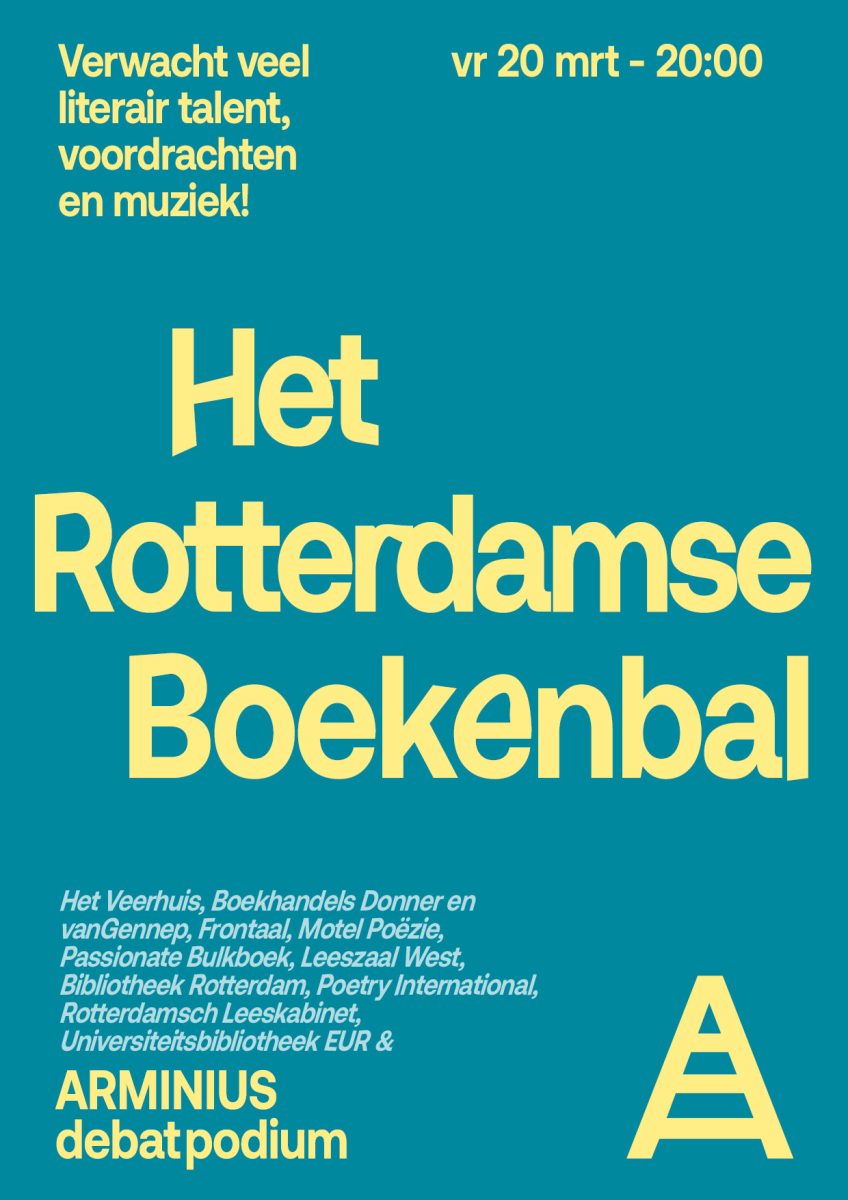 Deze avond wordt georganiseerd door Debatpodium Arminius, Boekhandels vanGennep en Donner, Bibliotheek Rotterdam, Frontaal, Motel Poëzie, Rotterdamsch Leeskabinet, Universiteitsbibliotheek EUR, Het Veerhuis, Leeszaal West, Poetry International & Passionate Bulkboek.
