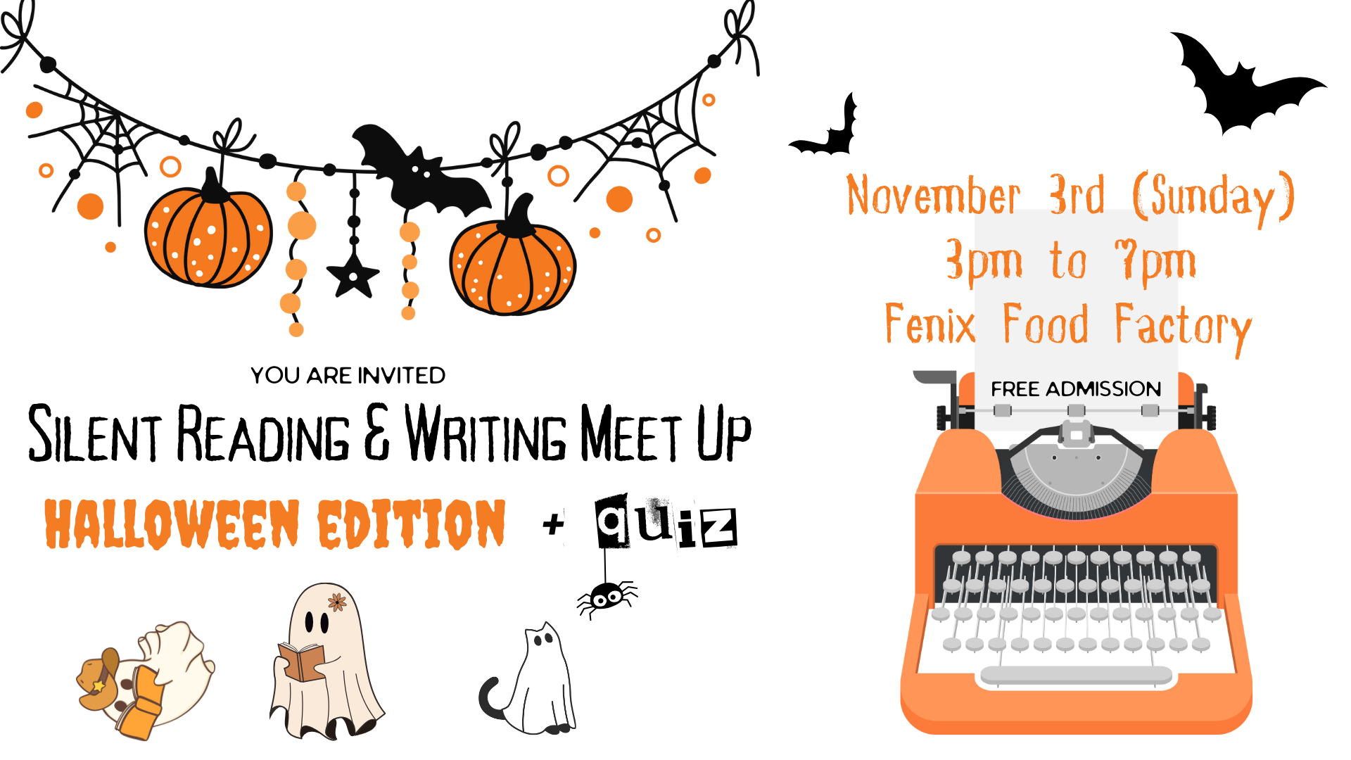 For this season we bring you a very special reading and writing event: Silent Reading & Writing Meet Up – Halloween Edition!